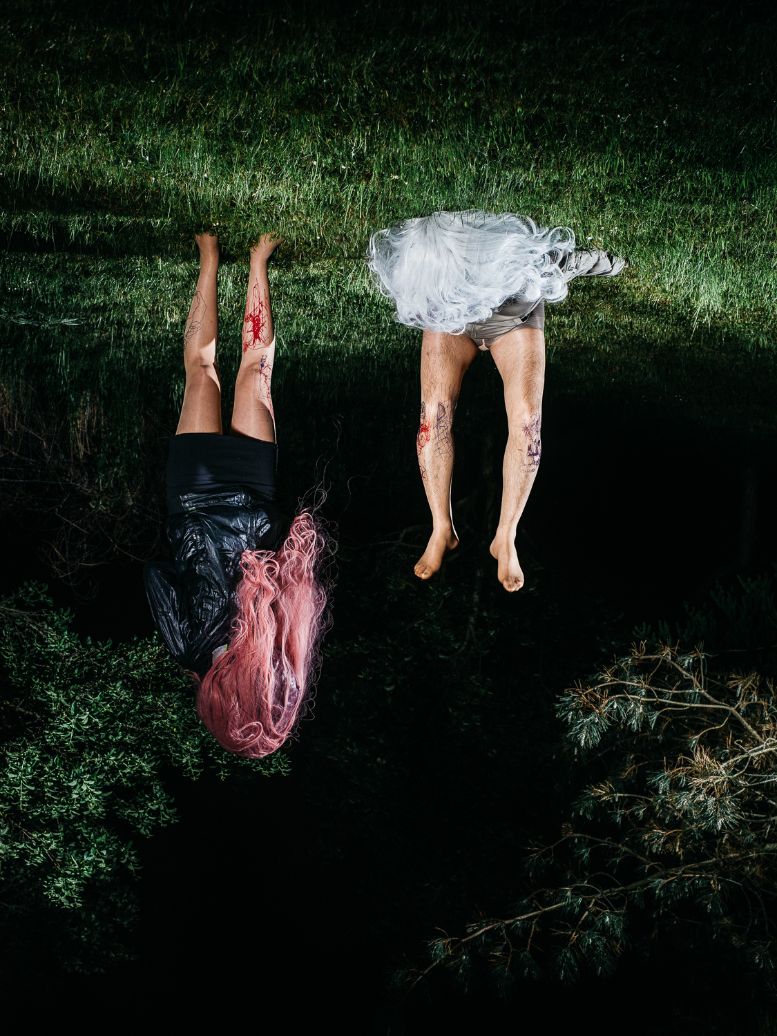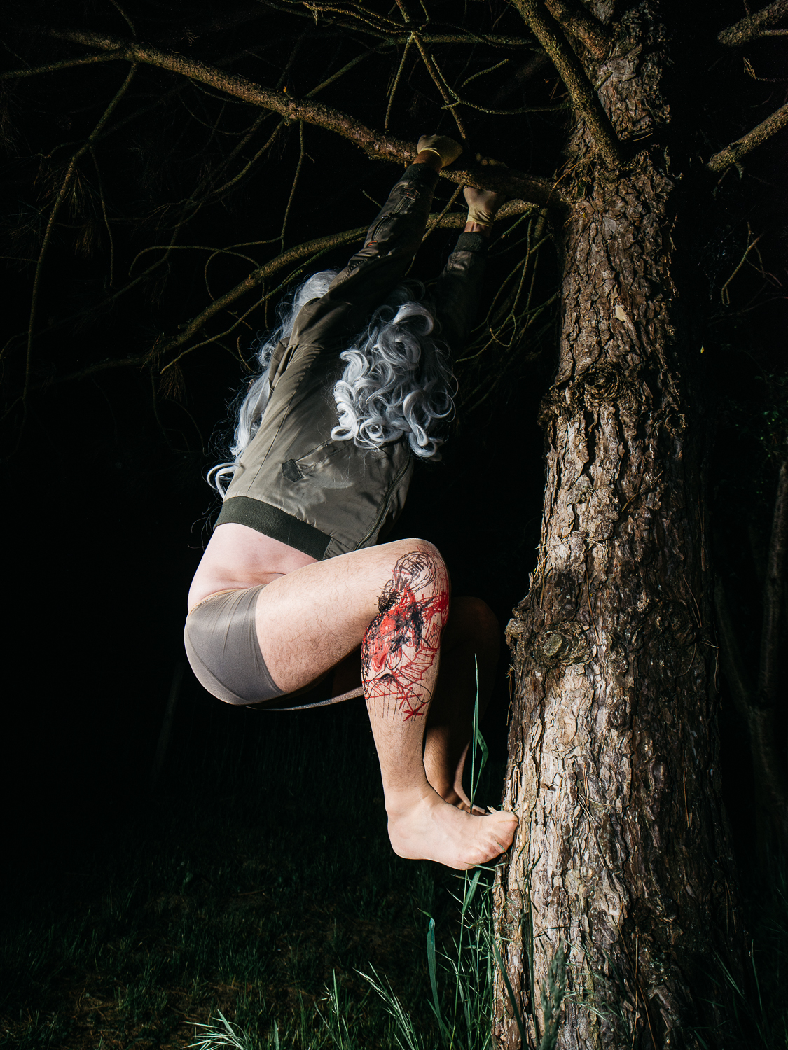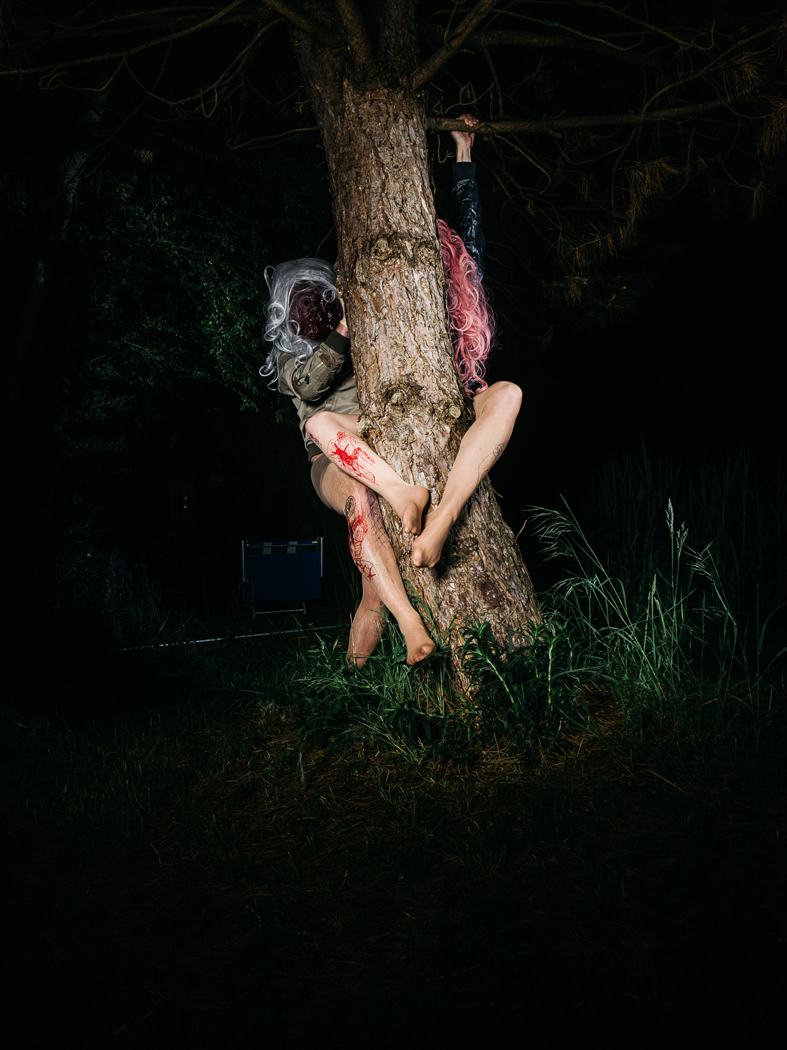 Karl Karner has given his drawings feet by printing them on WOLFORD tights. This transforms the wearers themselves into performers and makes them part of the piece. Art is taken out of the exhibition space and performance takes place in public.