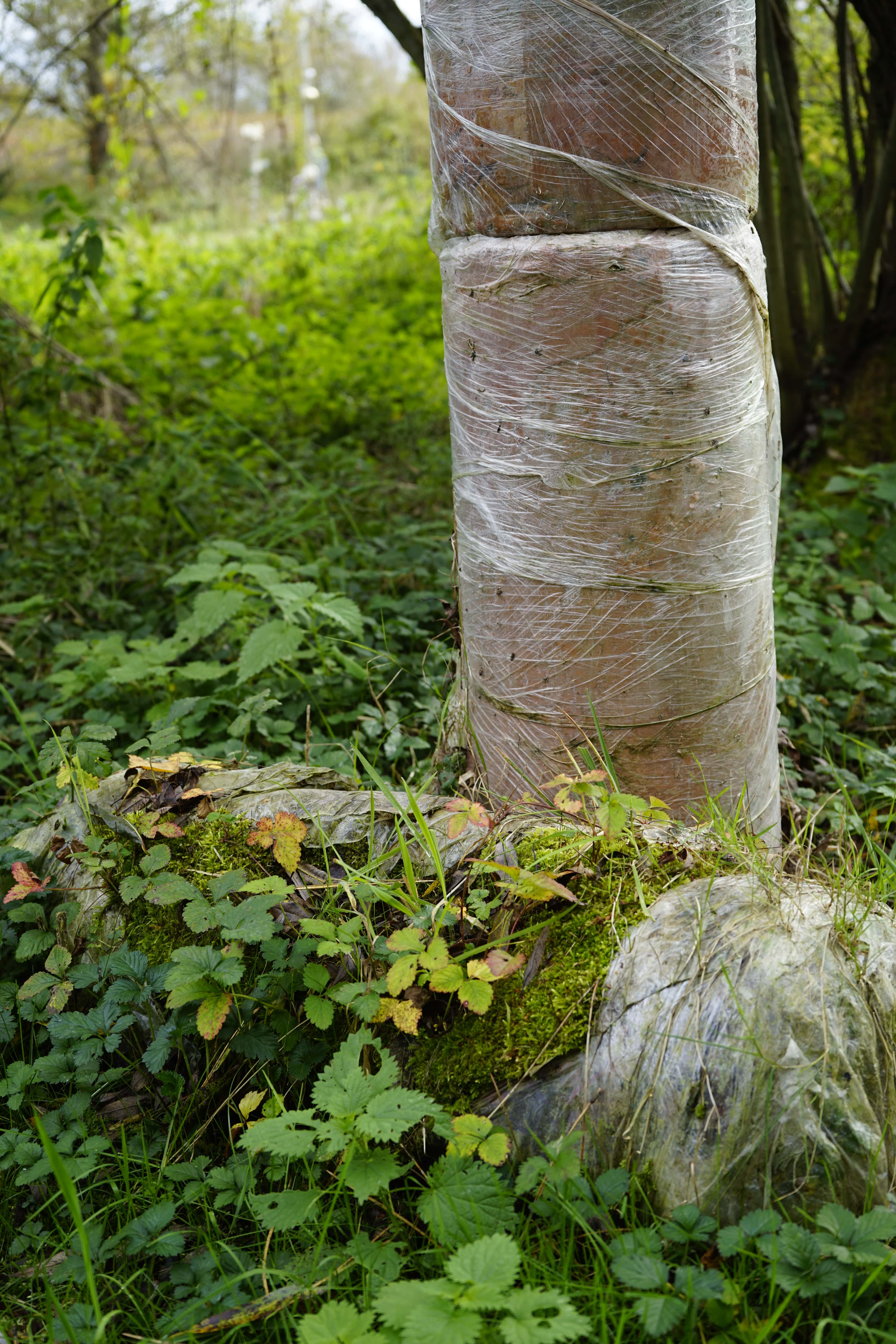 Karners Überraschungseier präsentieren sich zunächst als in Größe variierende, zylindrische Formen aus sprödem Material, das an Stein, Ton oder Gips erinnert. Bei manchen der Überraschungseier sind Ausbrüche sichtbar, die den Blick auf ein glänzendes Material im Kern freilegen, das – nicht zuletzt aufgrund des Titels – Neugierde und ein Bedürfnis nach Erklärung erweckt. Der geforderte Kontext findet sich zunächst im Entstehungsprozess der Überraschungseier.